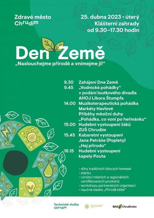 Připraveny budou hry, workshopy a dílny např. u Střední školy zemědělské a Vyšší odborné školy Chrudim, Ekocentra Palety, Momo Chrudim, o. p. s., Městských lesů Chrudim, Regionálního muzea v Chrudimi, DDM Chrudim, Zeleného domu Chrudim, Mama klubu Chrudim, Městské knihovny a Informačního střediska EU Europe Direct Pardubice apod.