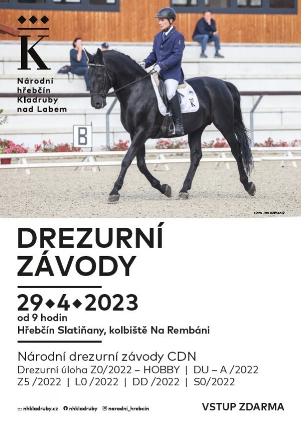 Národní hřebčín Kladruby nad Labem zve na Drezurní závody na kolbiště Na Rembáni do Slatiňan.