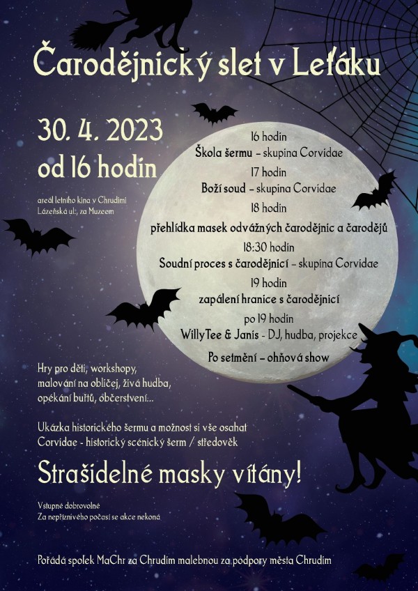 Již tradiční pálení čarodějnic v letním kině pro rodiny s dětmi pořádá spolek MaChr za Chrudim malebnou.