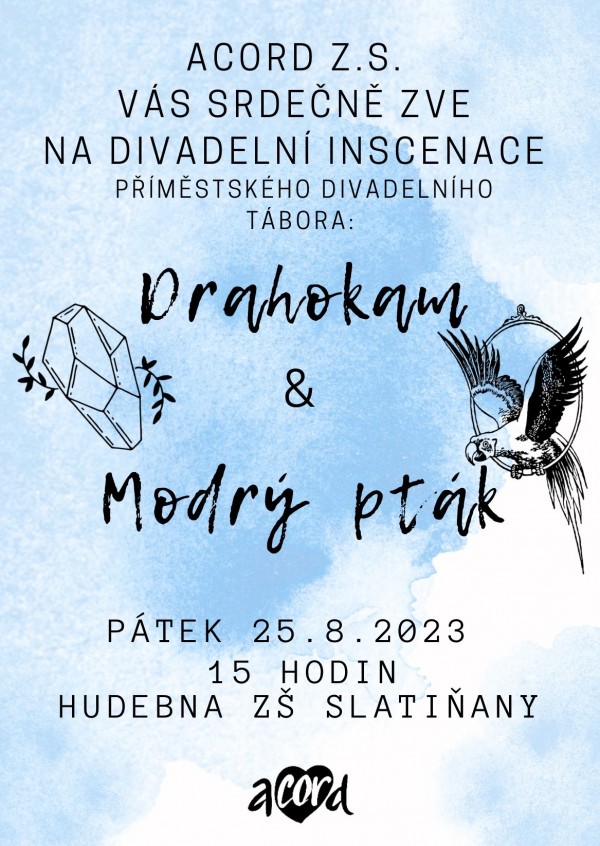 Divadelní spolek ACORD z. s. Vás srdečně zve na divadelní inscenaci příměstského divadelního tábora - Drahokam a Modrý pták.