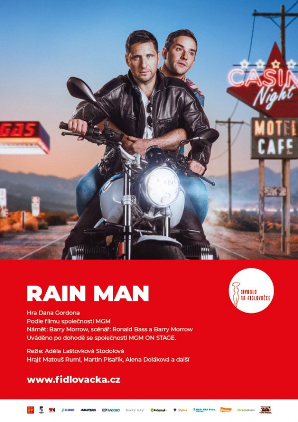 Dojemný oscarový příběh o cestě prospěcháře Charlieho a jeho autistického bratra Raymonda ke vzájemnému sblížení a osobní proměně se vrací na česká divadelní prkna po delší odmlce. Tato divadelní "road movie" nabízí gradující příběh, jemný humor a detailní psychologickou kresbu obou bratrů. Titulní postava Raymonda je obrovskou hereckou příležitostí pro všestranný talent Matouše Rumla, navíc podpořený režijním vedením Adély Stodolové, která v Rain Manovi opět jedinečně zkombinuje své režijní a choreografické zkušenosti.