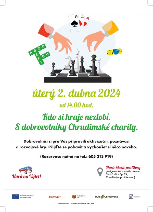 Od 14:00 Kdo si hraje nezlobí. S dobrovolníky Chrudimské charity.