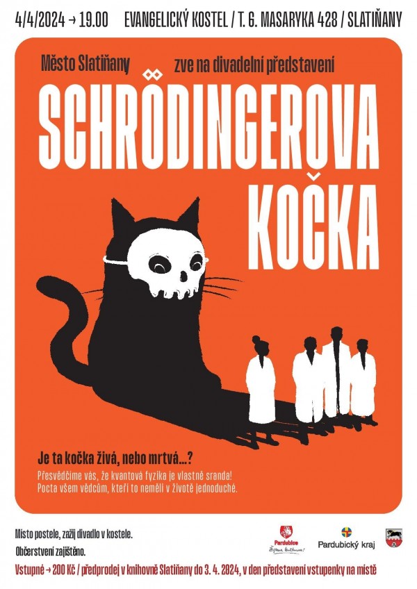 Město Slatiňany a Divadlo Tří srdečně zvou na divadelní představení Schrodingerova kočka.