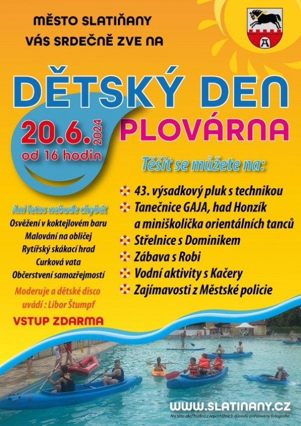 Město Slatiňany Vás srdečně zve na Dětský den na plovárně.
