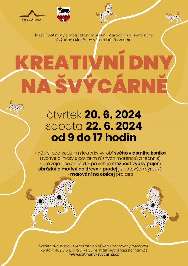 Město Slatiňany a Interaktivní muzeum starokladrubského koně Švýcárna vás srdečně zvou na "Kreativní dny na Švýcárně".