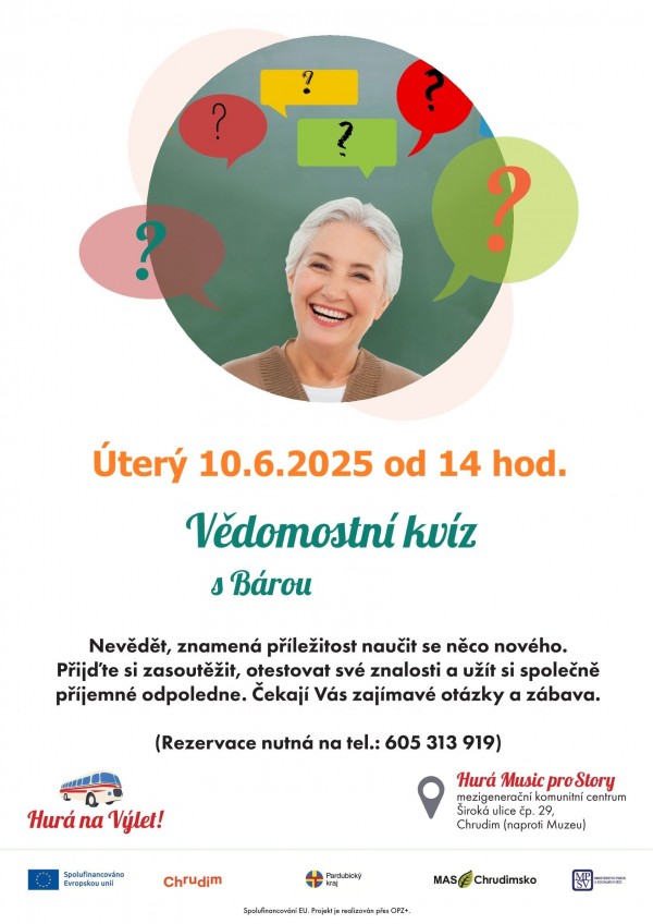 Od 14:00 VĚDOMOSTNÍ KVÍZ S BÁROU DEBNÁROVOU.