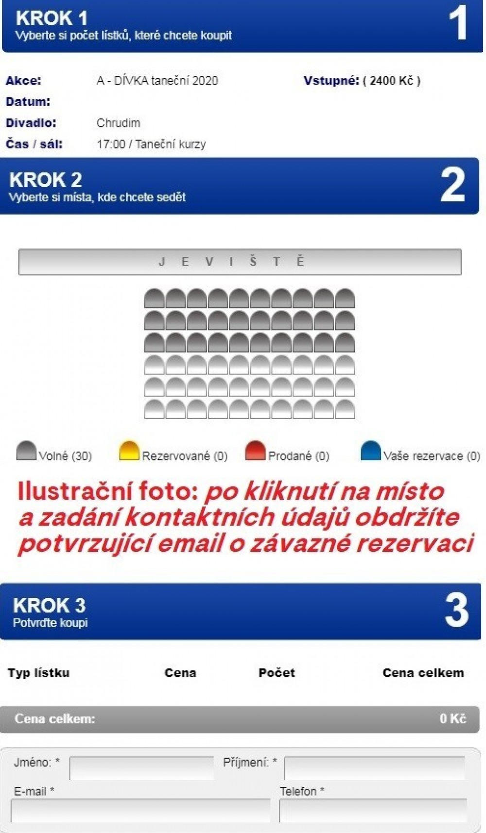 - na webu rezervace míst pro tanečníky a tanečnice,