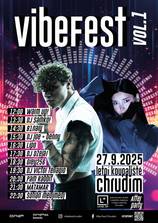Kdo má zájem pokračovat po VIBEFESTU dál, a to na afterparty v Level Up, více informací u pořadatele této party, tj. Level Up Chrudim.