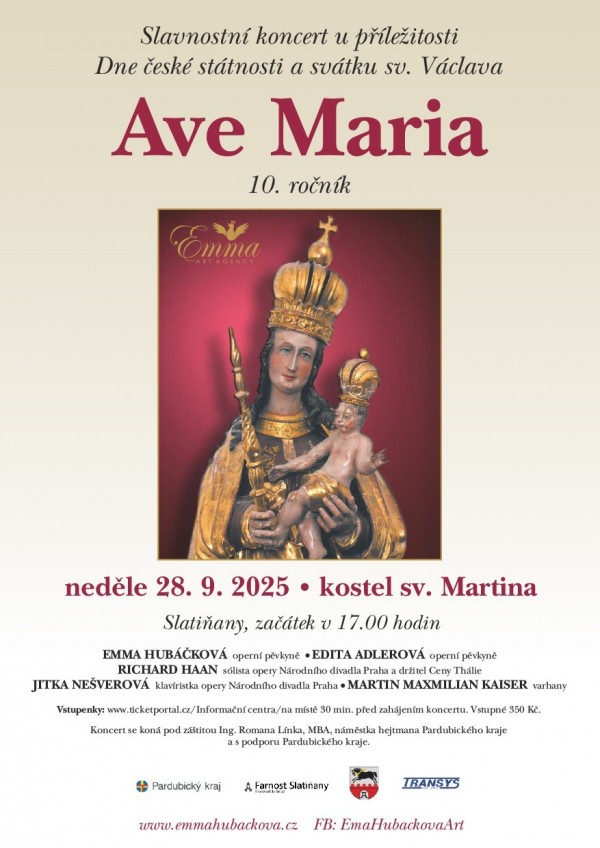 Srdečně zveme na koncert Emmy Hubáčkové Ave Maria.