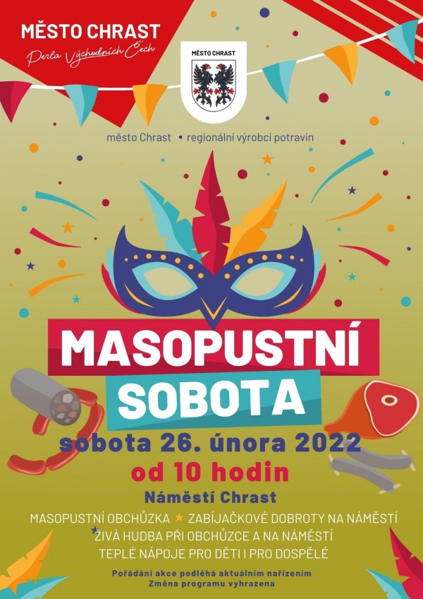 Město Chrast vás zve na druhý ročník Masopustní soboty na Náměstí v Chrasti 26. 2.