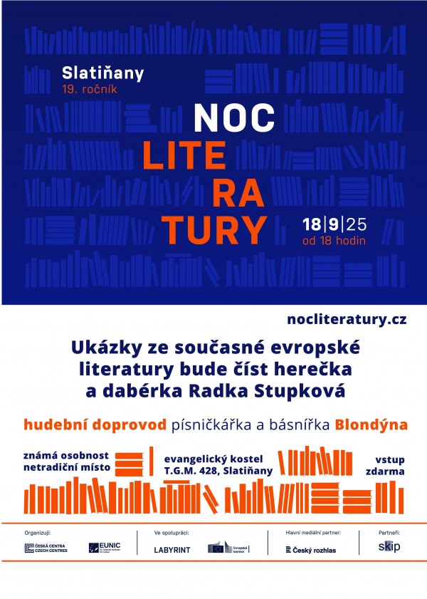 Srdečně zveme na Noc literatury do Evangelického kostela, kde ukázky ze současné evropské literatury bude číst Herečka a dabérka Renata Stupková.