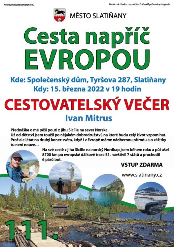 Srdečně zveme na 111. Cestovatelský večer. Besedou provede pan Ivan Mitrus "Cesta napříč Evropou".