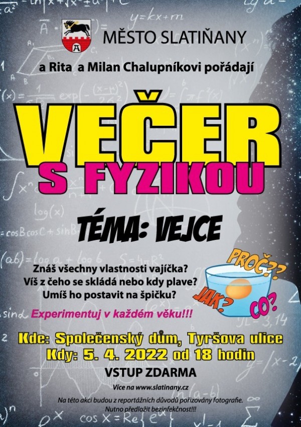 Zveme malé i velké na večer plný pokusů - Večer s fyzikou na téma VEJCE. Experimentuj v každém věku :-)