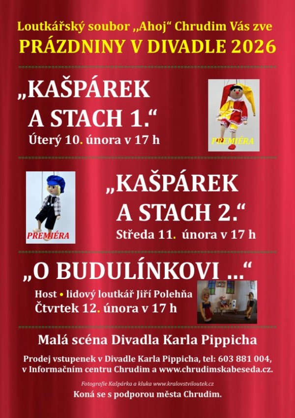 Loutkářský soubor „Ahoj“ Chrudim Vás zve na PRÁZDNINY V DIVADLE 2026.
