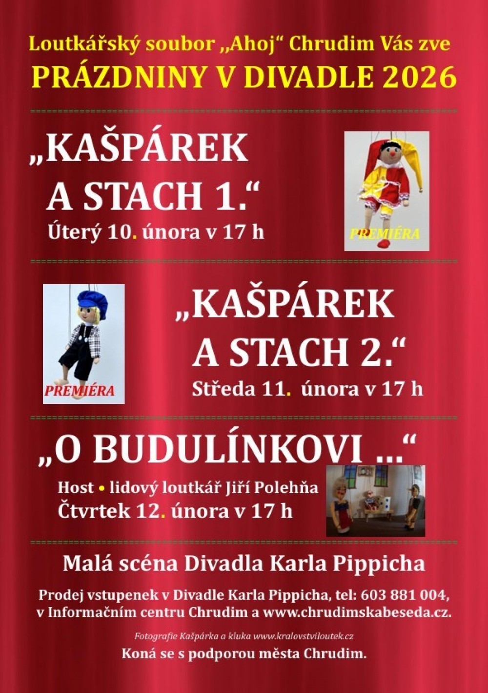 Loutkářský soubor „Ahoj“ Chrudim Vás zve na PRÁZDNINY V DIVADLE 2026. Hostem pro dnešní den