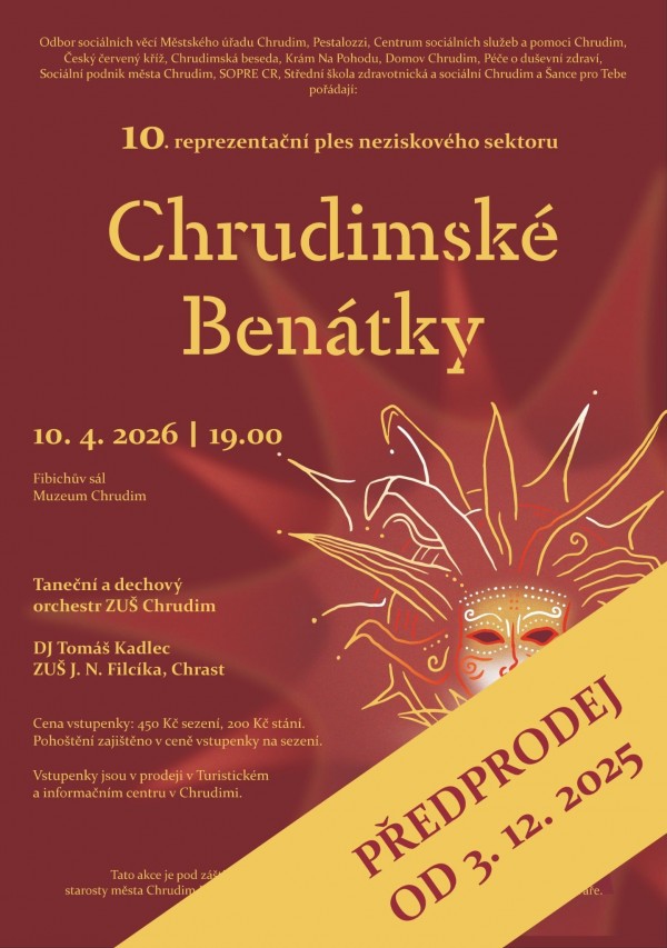 - na přípravě se podílejí neziskové organizace z Chrudimi, Odbor sociálních věcí Města Chrudim, Chrudimská beseda a společensky odpovědné firmy. Více na webu "Chrudimské Benátky 2026"