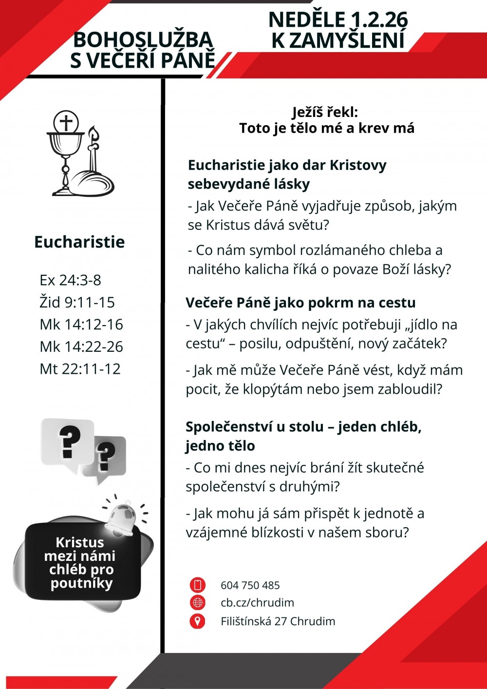 Před touto speciální bohoslužbou s Večeří Páně se můžete zúčastnit i modliteb, které začínají od 8:30.