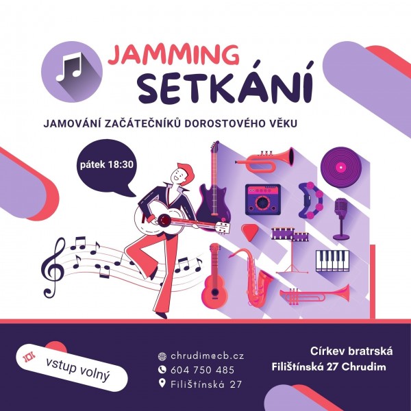 Přijďte si zajamovat. Jamování navazuje na dětský klub dorostu. Jamuje se na klavír, kytary, rytmické nástroje, kachon apod. pod vedením dospělého hudebníka.