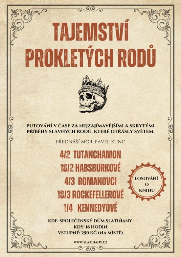 Srdečně zveme na přednášku "Tajemství prokletých rodů", které otřásly světem. Tentokrát Rockefellerové.