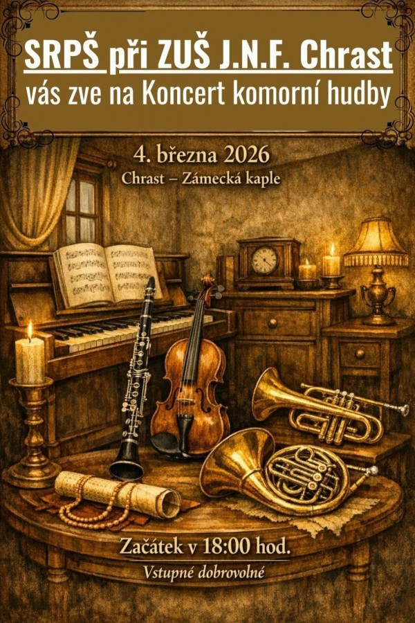 ZUŠ J.N. Filcíka Chrast vás zve na koncert, který se uskuteční v zámecké kapli ve středu 4. března od 18 hodin.