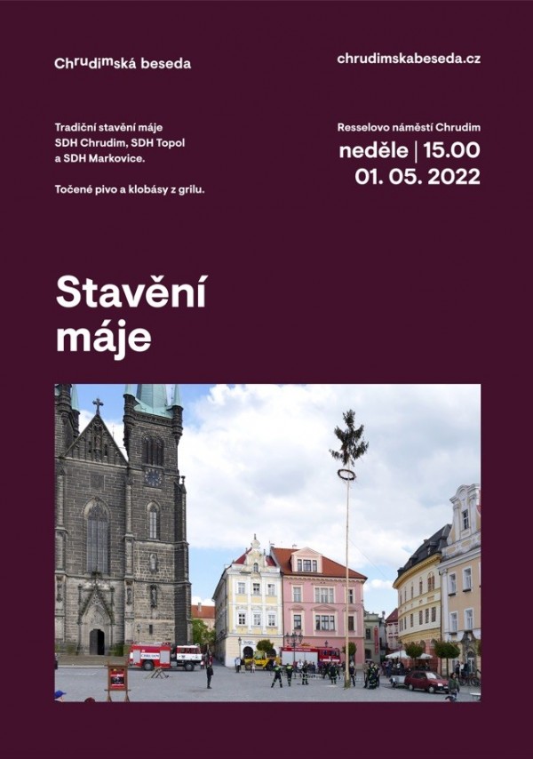 Stavění májky se uskuteční na Resselově náměstí za účasti SDH Chrudim, SDH Topol a SDH Markovice.