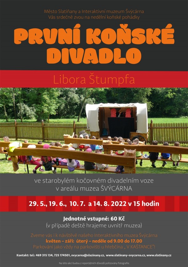Město Slatiňany a Interaktivní muzeum Švýcárna Vás srdečně zvou na nedělní loutkové koňské pohádky " První koňské pohádky".