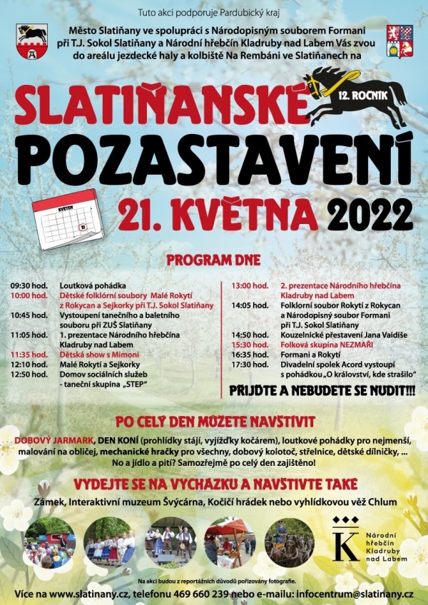 Srdečně zveme na celodenní akci "12. ročník Slatiňanského pozastavení" s bohatým kulturním programem, dnem koní a dobovým jarmarkem.