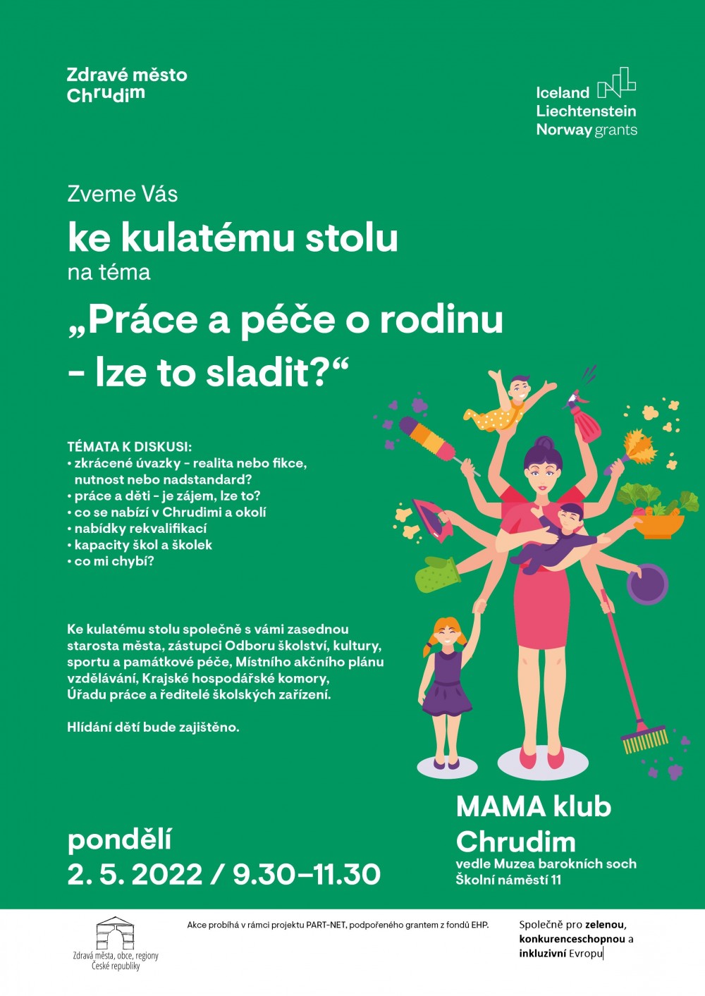 Přijďte s námi diskutovat a ptát se v pondělí 2. května od 9:30 do 11:30 hodin do Mama klubu Chrudim (vedle Muzea barokních soch, Školní náměstí 11).